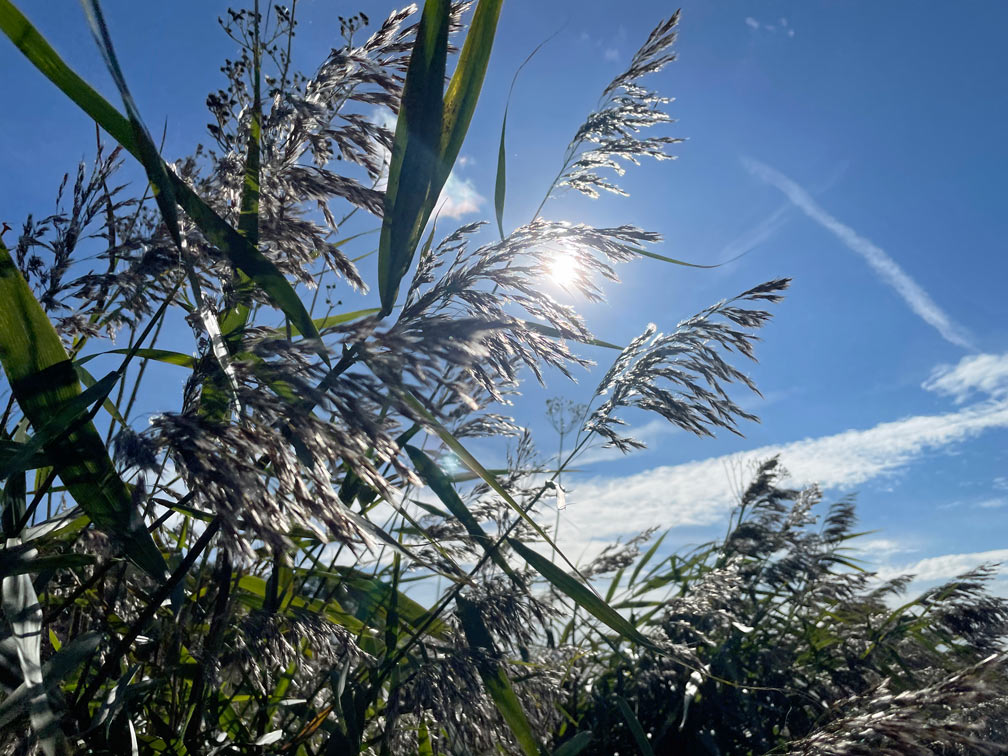 Die neuen Gerüche nehmen Alex voll und ganz in ihren Bann. Ich beobachte ihn, wie er seine Hundenase zwischen die Halme drückt. Wie sich sein Nasenrücken kräuselt, um ja jedes Detail einzusaugen. Es zaubert mir jedes Mal ein Lächeln ins Gesicht und erfüllt meinen Körper mit einem wohligen Gefühl, wenn er so interessiert und scheinbar fröhlich die Umgebung entdeckt. Moore und Feuchtwiesen sind empfindliche Lebensräume, in denen verschiedene Tiere leben, brüten und/oder rasten. Deshalb gilt hier: Stets auf den Wegen bleiben und Hunde an der Leine lassen! Daran halten wir uns selbstverständlich.